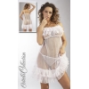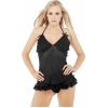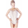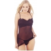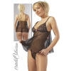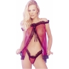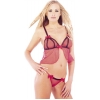 Lace pattern breast cups with mesh skirting that has 2 sexy front splits and comes with matching side tie panties, and what can be tied can also be untied ;)