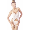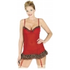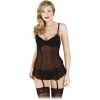 Damson stretch mesh cami-suspender with front lace and slightly padded cups