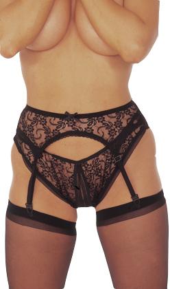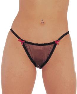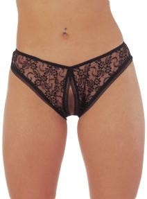 Super sexy lacy panties with a secret split. One size fits 8-14. Black, White or Red