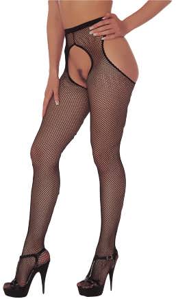 Devilishly sexy Fishnet suspender tights. These open crotch tights are extremely sexy and just the ticket to get pulses racing.